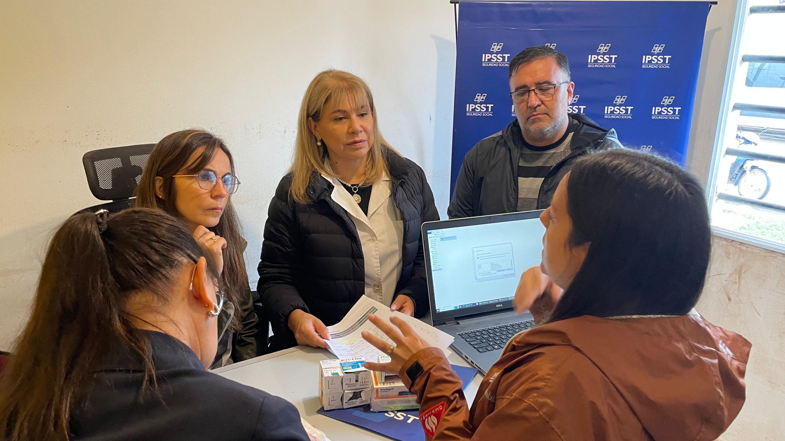 La actividad contó con la presencia de la interventora del IPSST, Dra. Elena Hurtado, quien estuvo acompañada por el gerente de Filiales, Walter Rodríguez; el gerente de Beneficiarios, Emilio Ramos; y la Dra. Romina Catalán, referente del Departamento de Programas de Gestión Racional de Medicamentos (DPGRM).